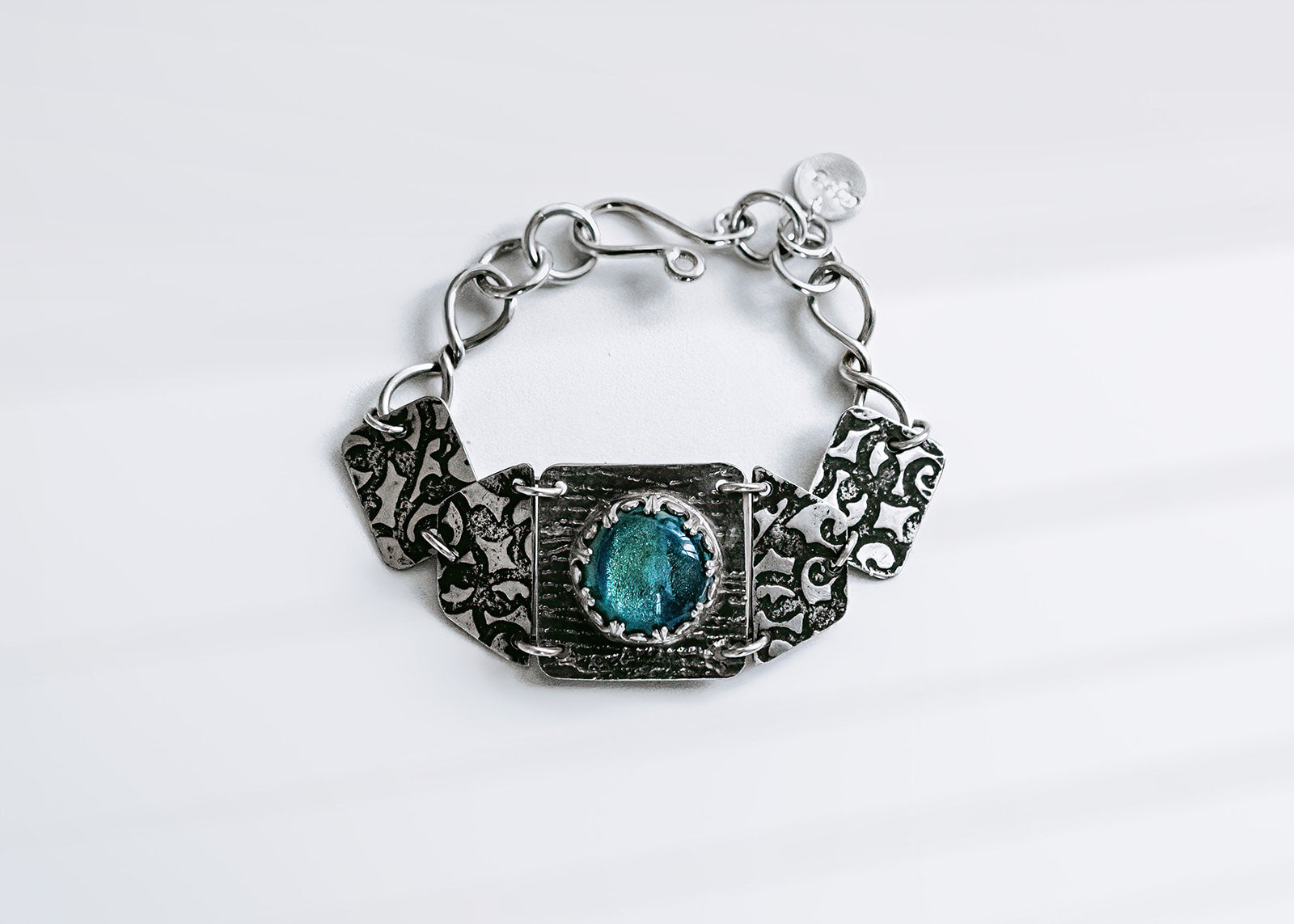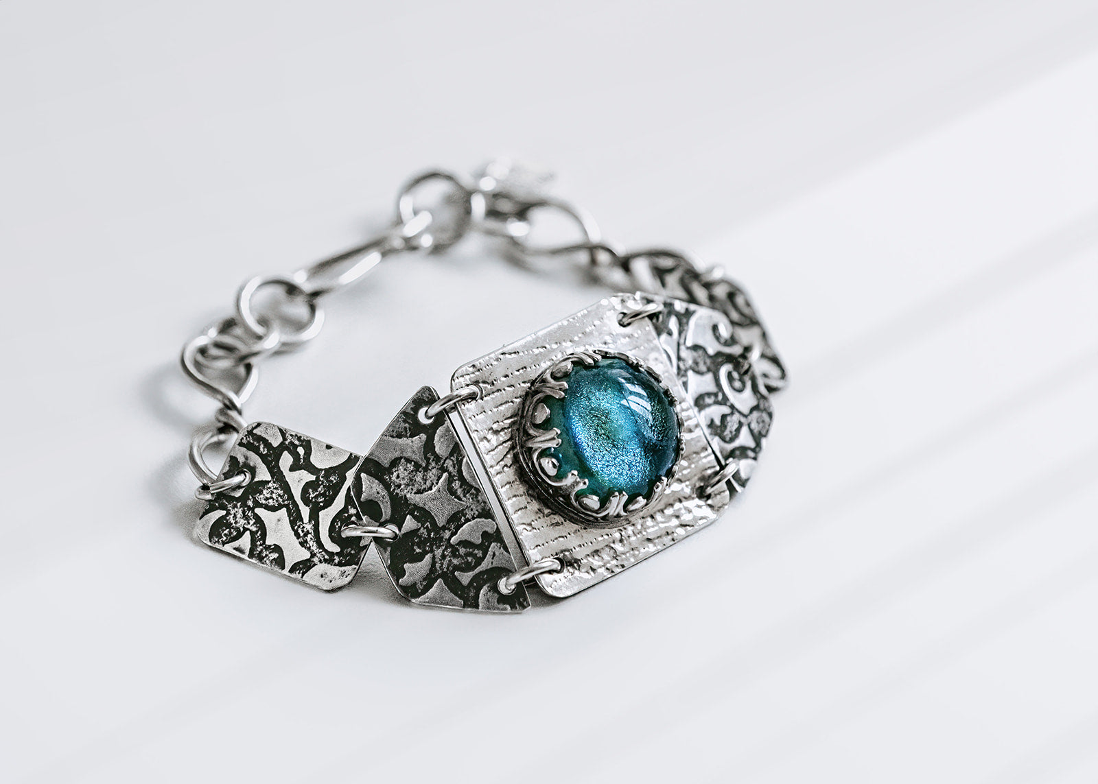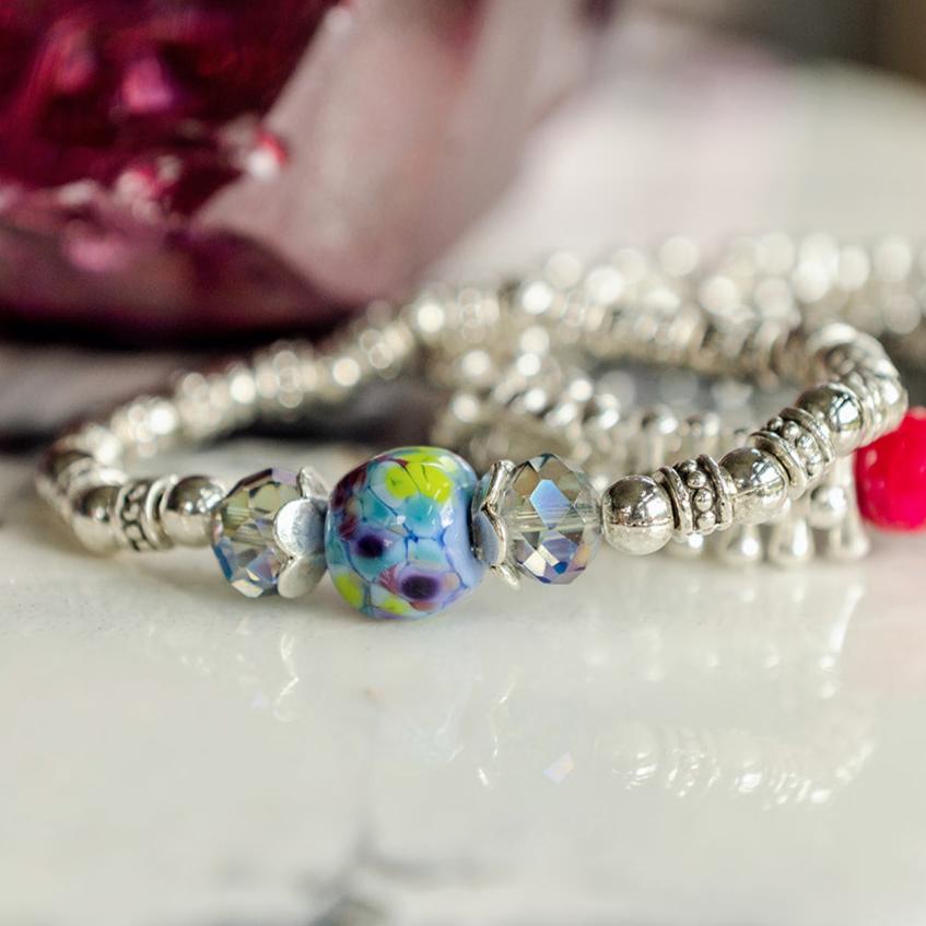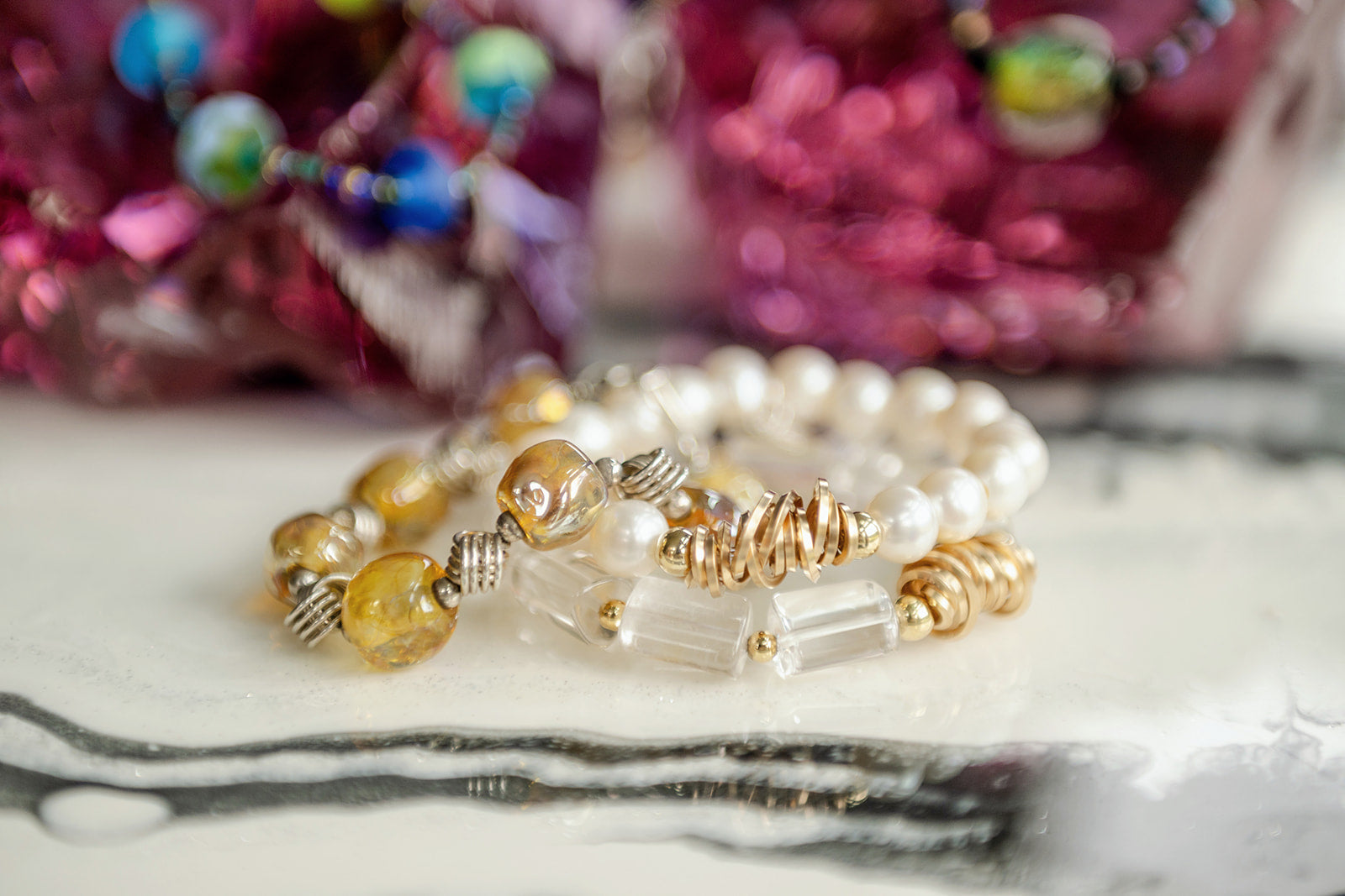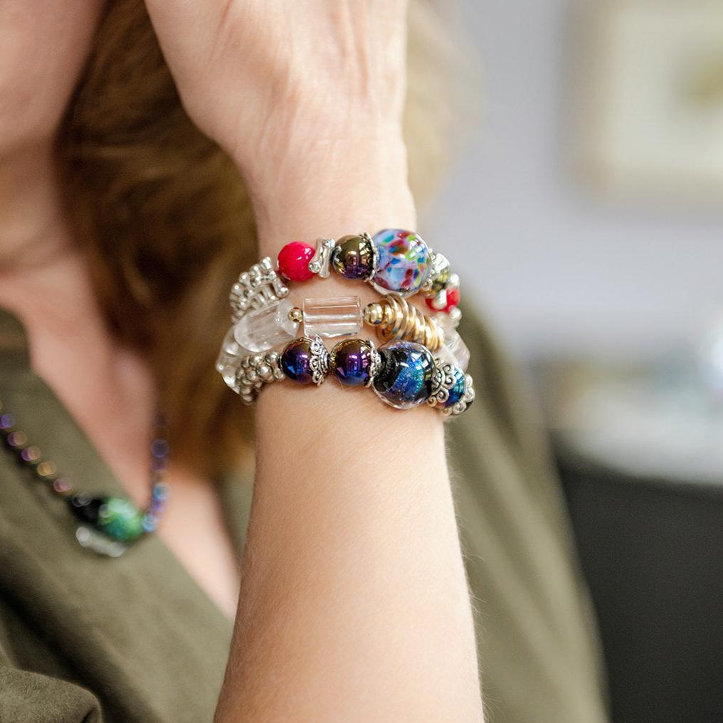 A lifelong lover of glass, I utilize gemstones, sterling silver, gold, and pewter, as well as my own glass and metal beads, to create unique one of a kind wearable artwork.