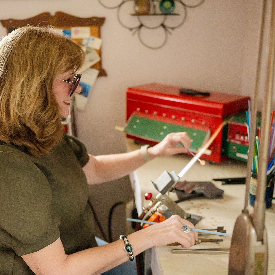 A public school music educator by trade, I have always had a lifelong love of all things jewelry and glass. I turned to the art of glass making in 2009 and later metal smithing. Simplicity, my love of color, and ease of wearability are the hallmarks of my designs.