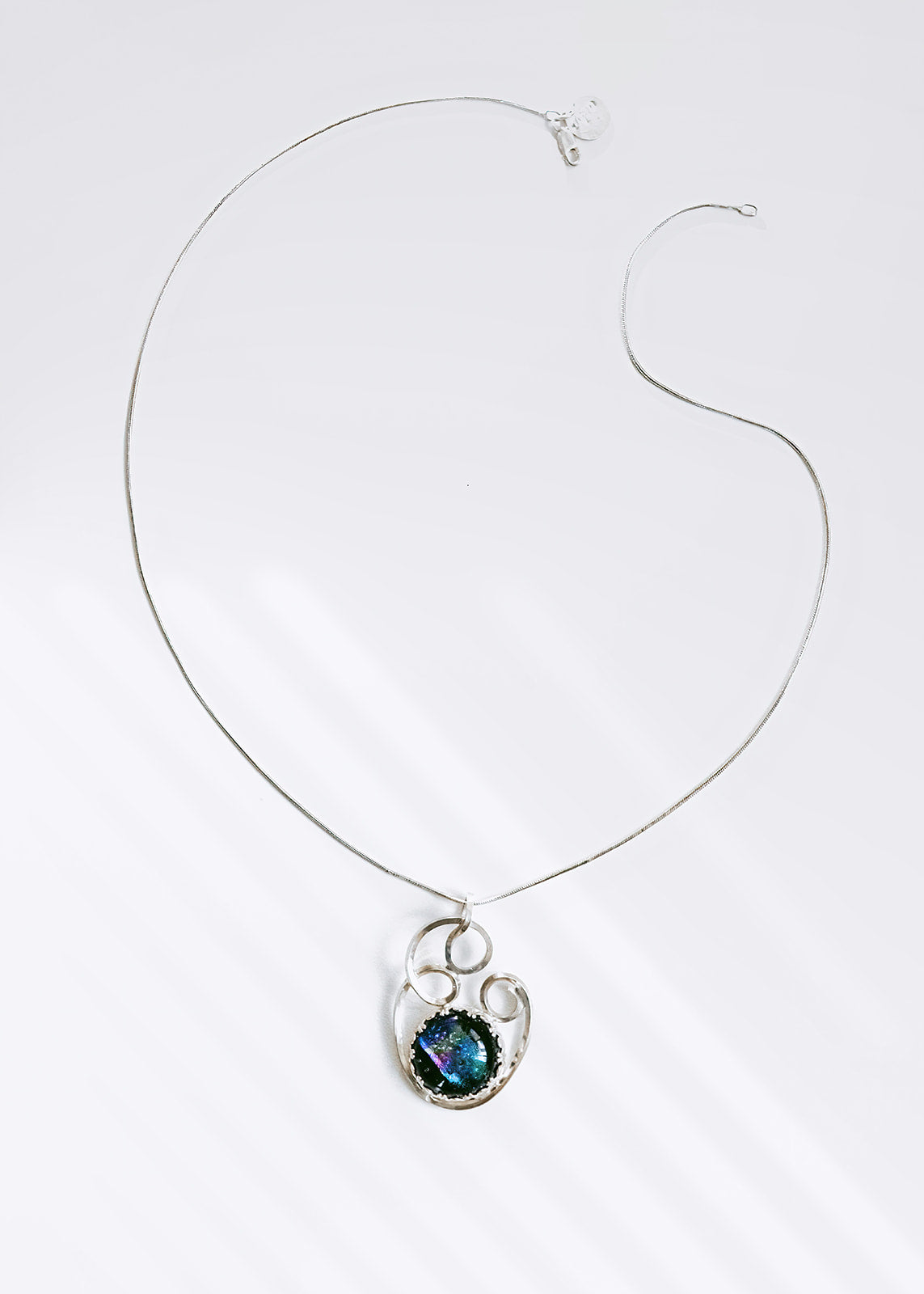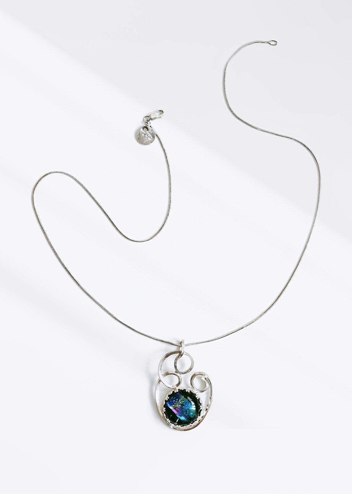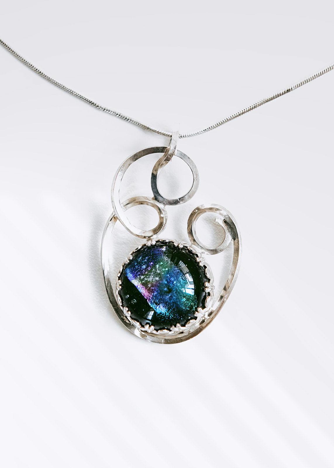 This handmade, one-of-a-kind sterling silver pendant features gorgeous lampwork glass, making it a wearable work of art.