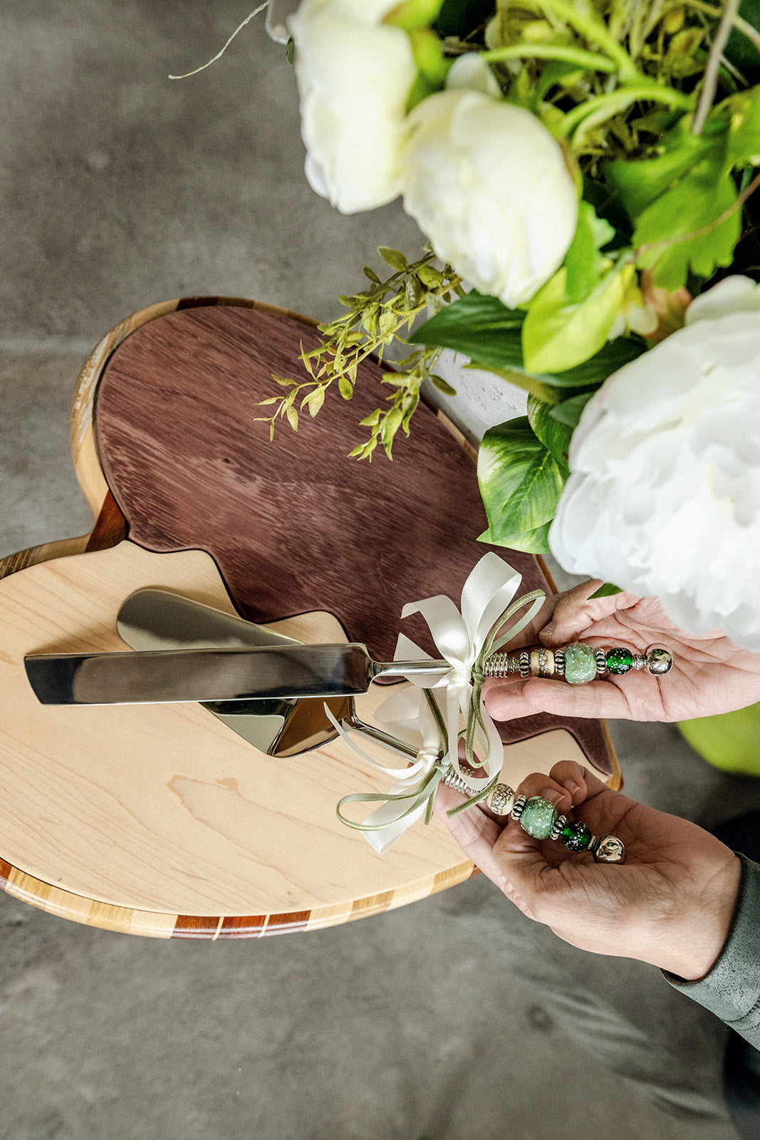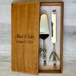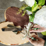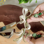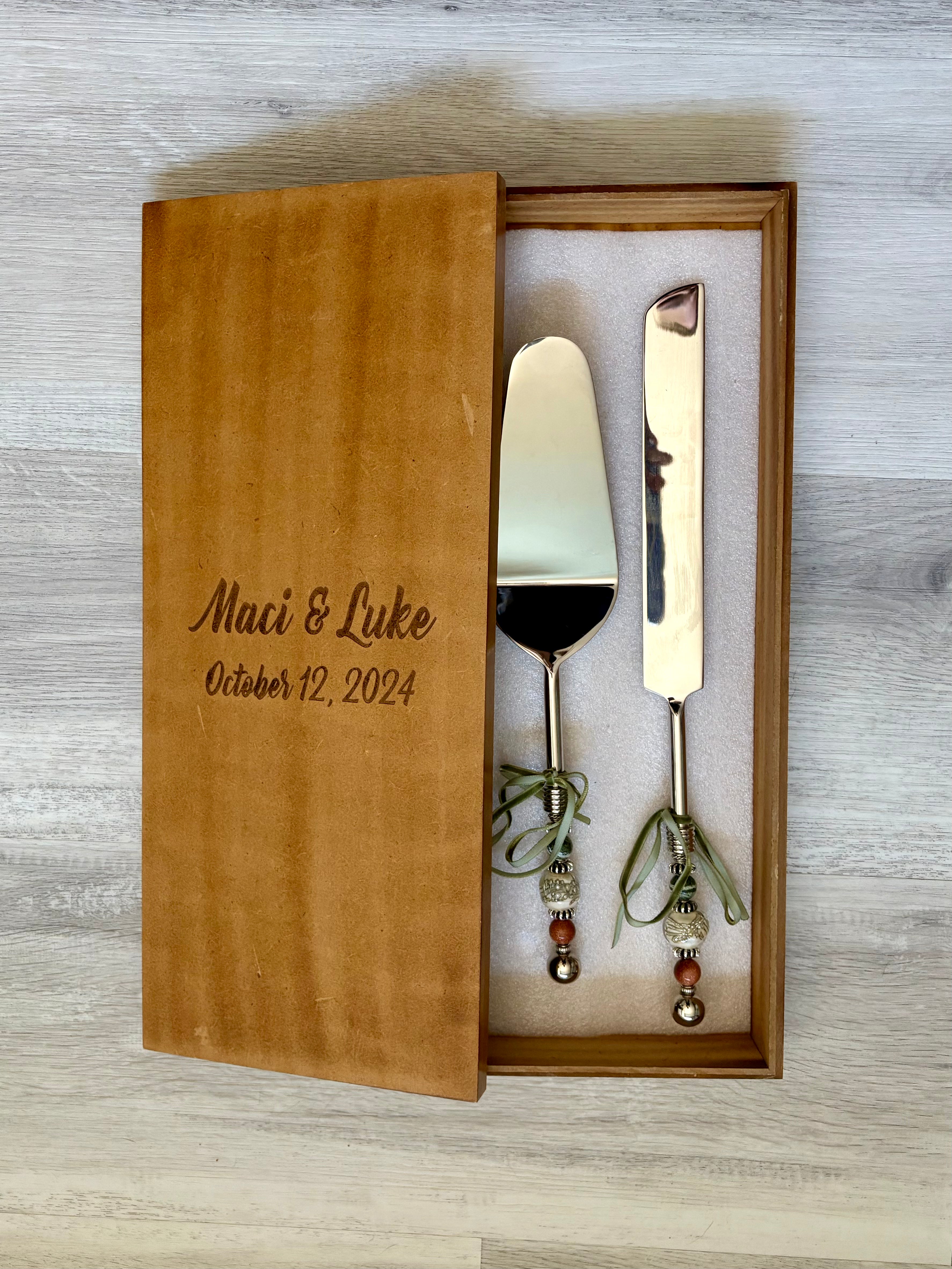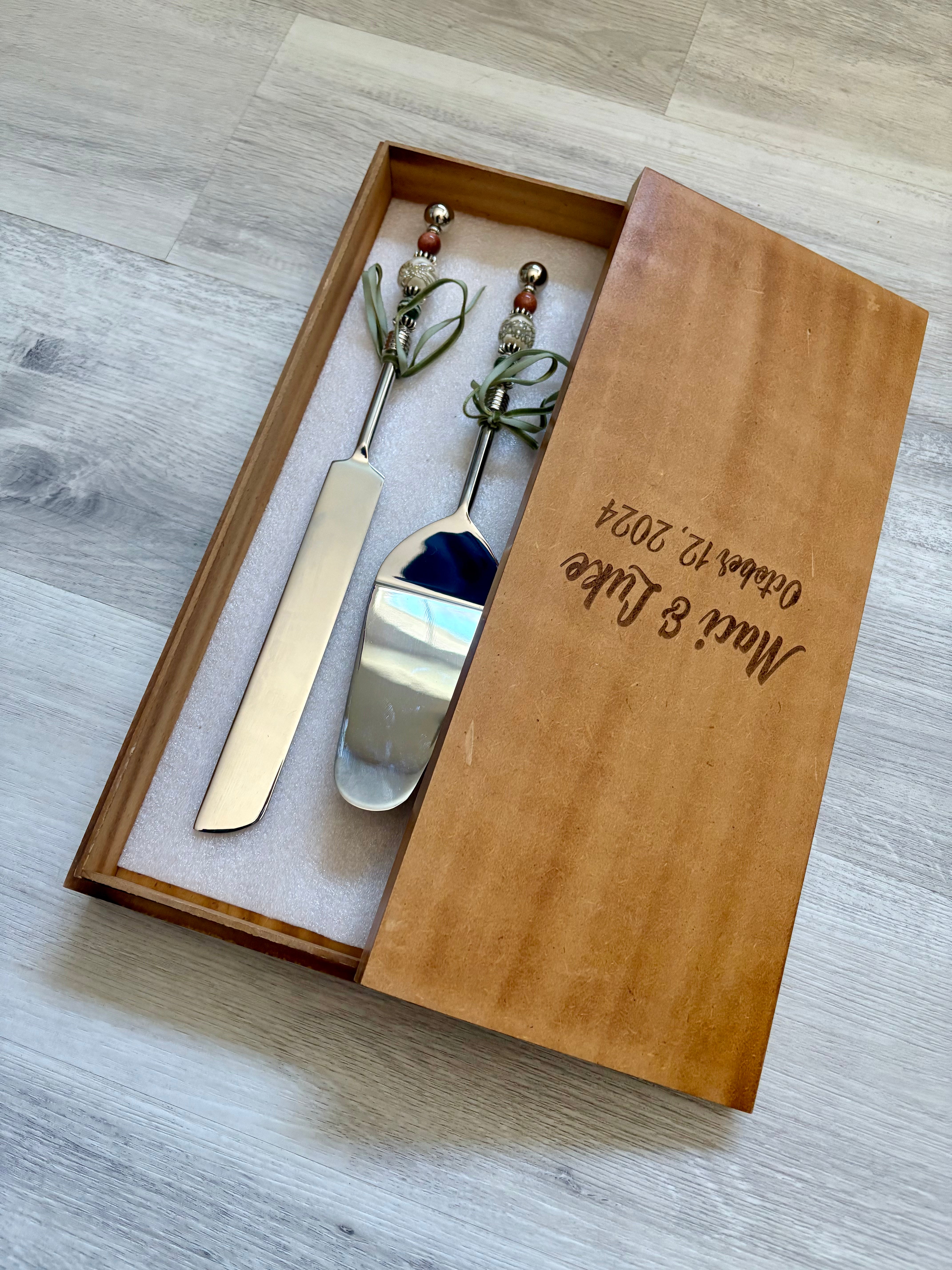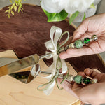 Cake server & knife in the brides color palette. Lifetime keepsake with handmade lampwork beads & stainless steel.
