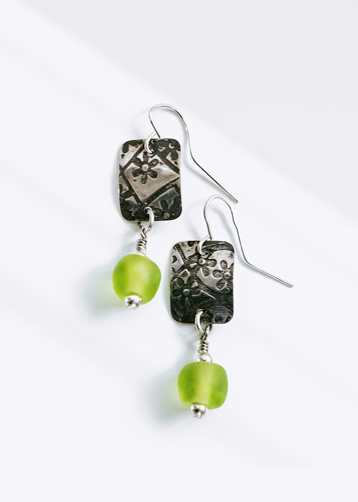 Green Floral Bead Earrings